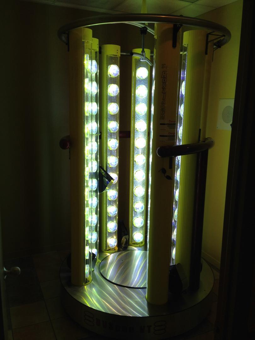 Avec son unique forme hexagonale et de technologie "surround-tan", les apparaeils verticaux UVscan-vt sont conçus pour les usagers ne désirant pas s'allonger pour bronzer.